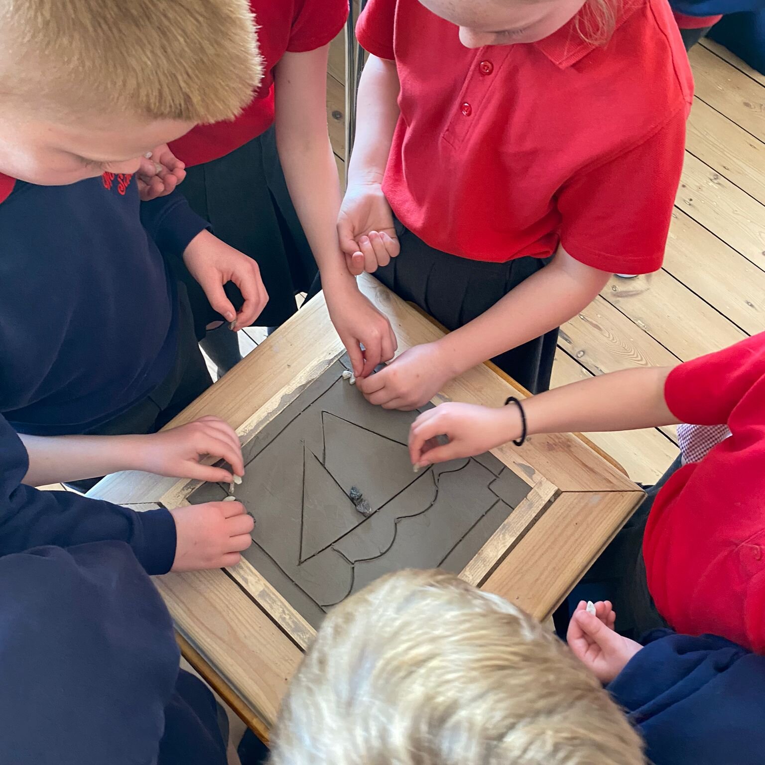 The children had a go at excavating their own chess pieces and coins out of soil, and plaster of paris. The children had great fun using their toothbrushes and tools to uncover their treasures.